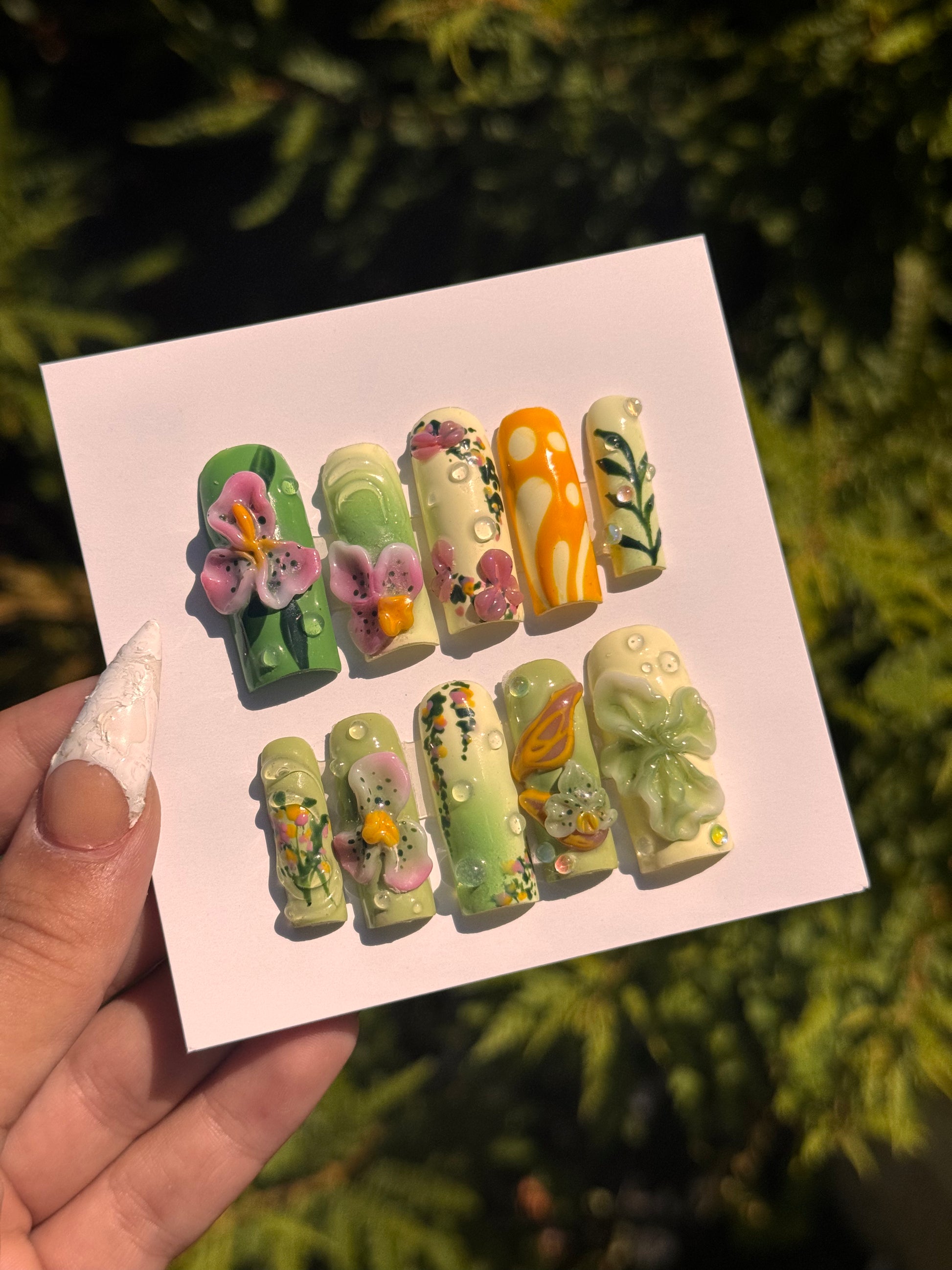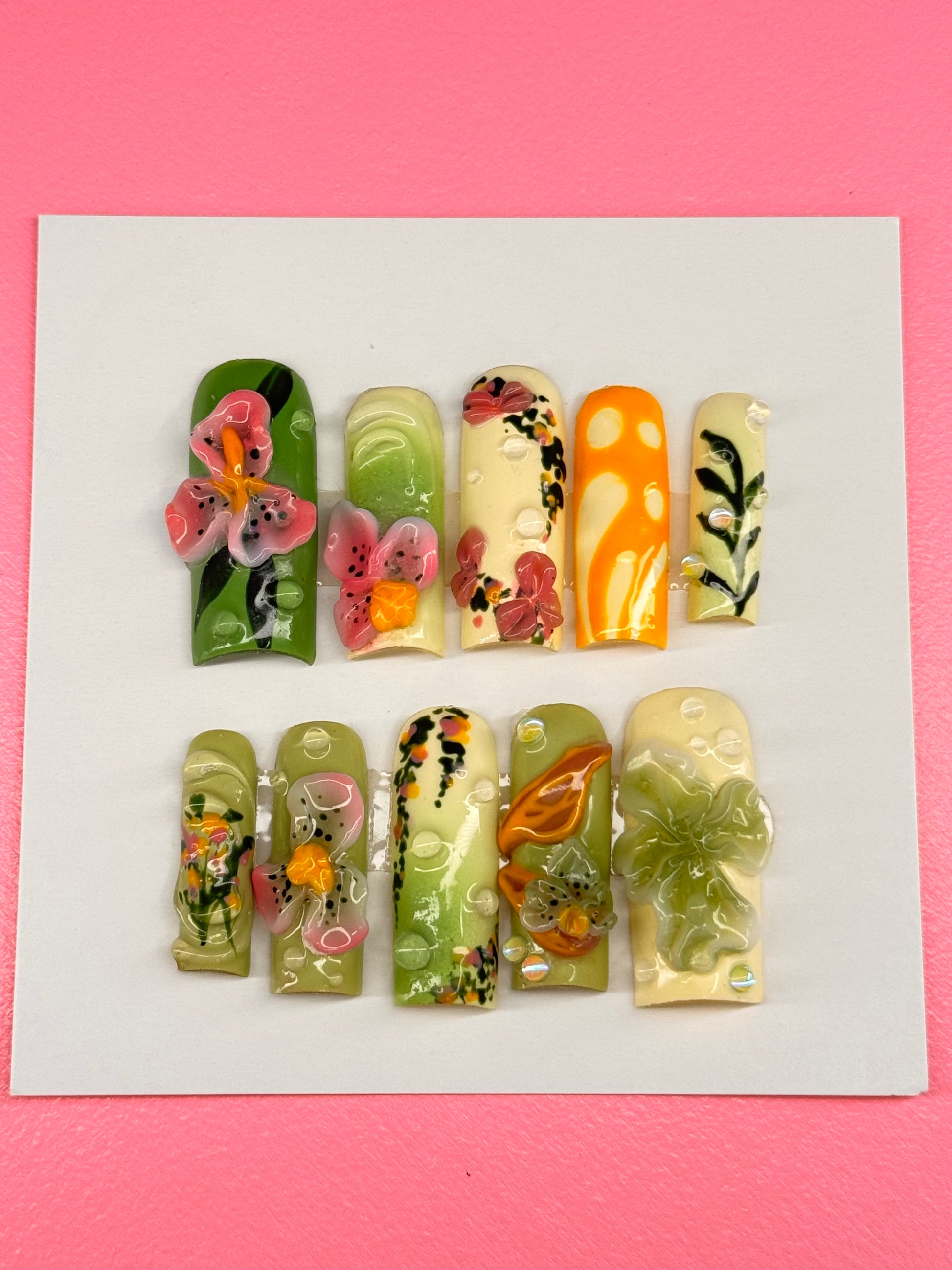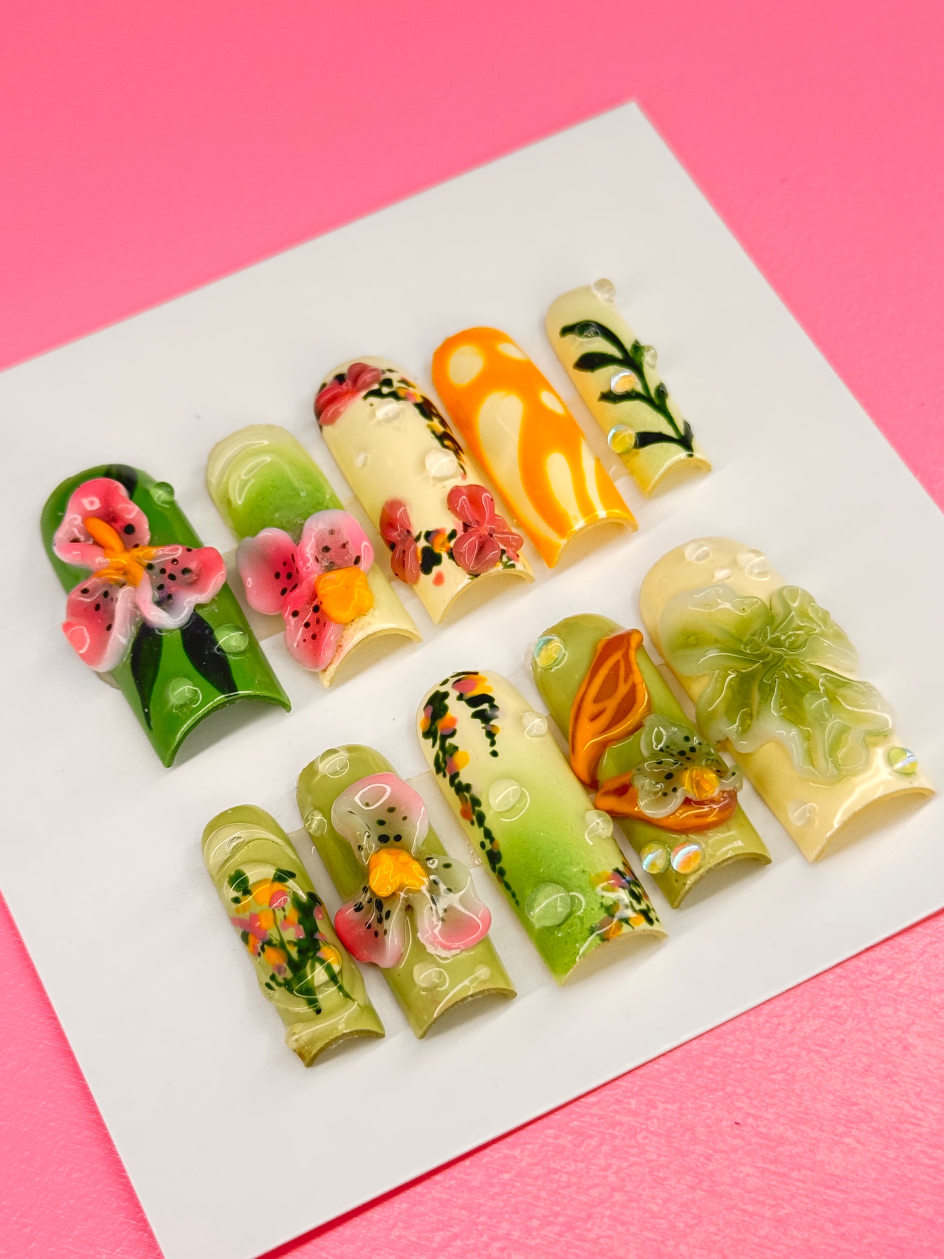 Image is in nail length “medium square.” Some charms may be different but still keep the same overall aesthetic.